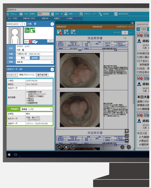 - 対象患者の主症病名や手術実績や手術予定、アレルギー、検査結果等、確認したい情報を最初に表示します。