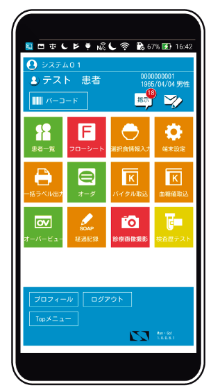 患者リストバンドのバーコードをカメラで読み込み、患者情報の表示が可能です。 - 看護記録の記載時間短縮