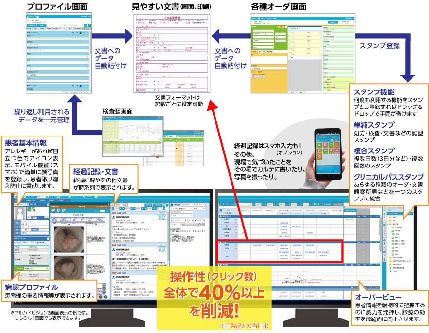本製品は、医療現場で求められる多彩な機能を豊富に備えた電子カルテです。
